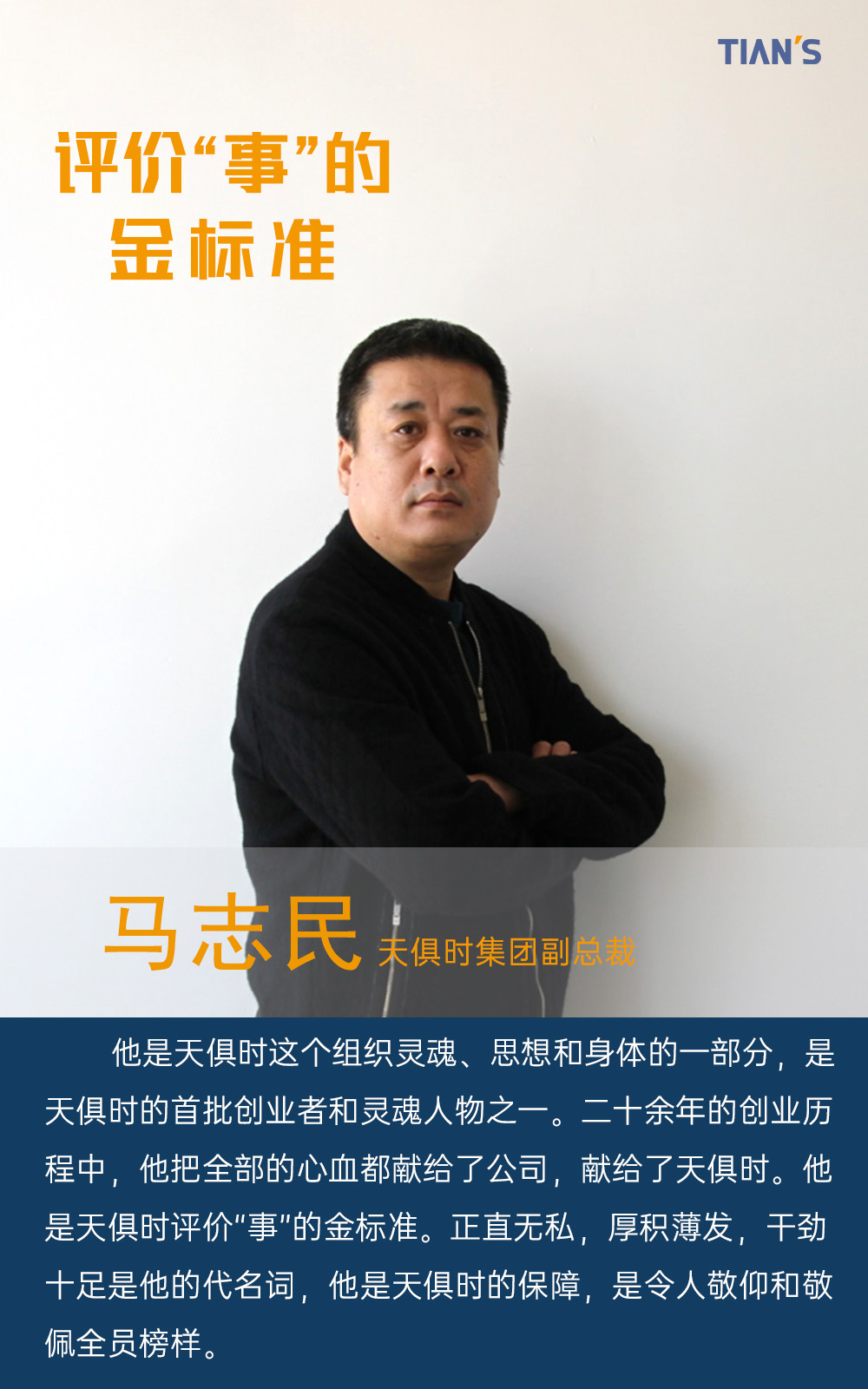 不馳于空想、不騖于虛名。發(fā)布天俱時集團金標準榜樣人物是為了更好的弘揚天俱時精神,傳承天俱時文化,讓我們銘記組織輝煌發(fā)展史中里程碑式的英雄人物及其事跡,心懷夢想,追光而行;傳承“金標準”奮斗的責任擔當,乘風破浪,揚帆遠航。