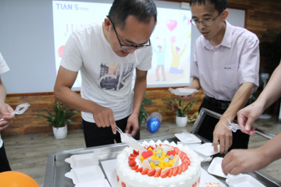 隨后,20余名入職三、五、十周年的員工代表通過“檢索關(guān)鍵詞”的主題游戲串起自己成長過程中一個(gè)又一個(gè)回憶。從“初識天俱時(shí)”的摸索前行到“指導(dǎo)人”的引領(lǐng)下突飛猛進(jìn);從“筑業(yè)大廈”的回憶到“天山大廈”的現(xiàn)在;一年一度的“天俱時(shí)科技論壇”從小家之言變成引領(lǐng)行業(yè)發(fā)展的名片,“改變”一直存在于我們成長發(fā)展的各個(gè)階段,每一個(gè)關(guān)鍵詞都記錄了我們在天俱時(shí)的點(diǎn)點(diǎn)滴滴。最后,入職三、五、十周年員工在溫馨的音樂中共同切開了象征圓滿幸福的蛋糕。