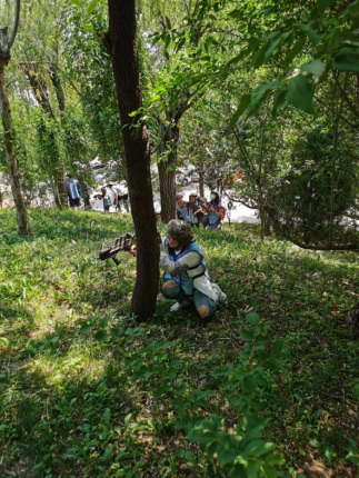 參與活動的家庭在樹蔭下搭起帳篷