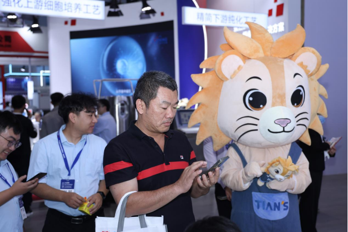 在本屆藥機展上,天俱時集團的品牌吉祥物—“天小獅”首發(fā)亮相,他將天俱時集團的形象擬人化。飄逸的鬃毛象征著天俱時集團二十五年來永不停歇,向前奔跑的姿態(tài);尾部的點綴則化用了品牌logo中的標志性元素,意味著靈感的誕生和創(chuàng)新的力量。熱情、勇敢的天小獅也憑借自身可愛的形象吸引著眾多觀眾前來打卡。