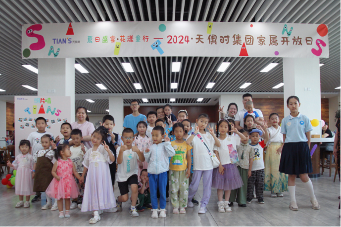 6月1日,在第74個(gè)國(guó)際兒童節(jié)來(lái)臨之際,天俱時(shí)集團(tuán)2024年家屬開(kāi)放日活動(dòng)也在集團(tuán)總部圓滿舉辦。本次活動(dòng)以“夏日盛宴,花漾童行”為主題,共邀請(qǐng)到60組家庭,185人參與到這場(chǎng)以快樂(lè)為主題的聚會(huì)當(dāng)中。