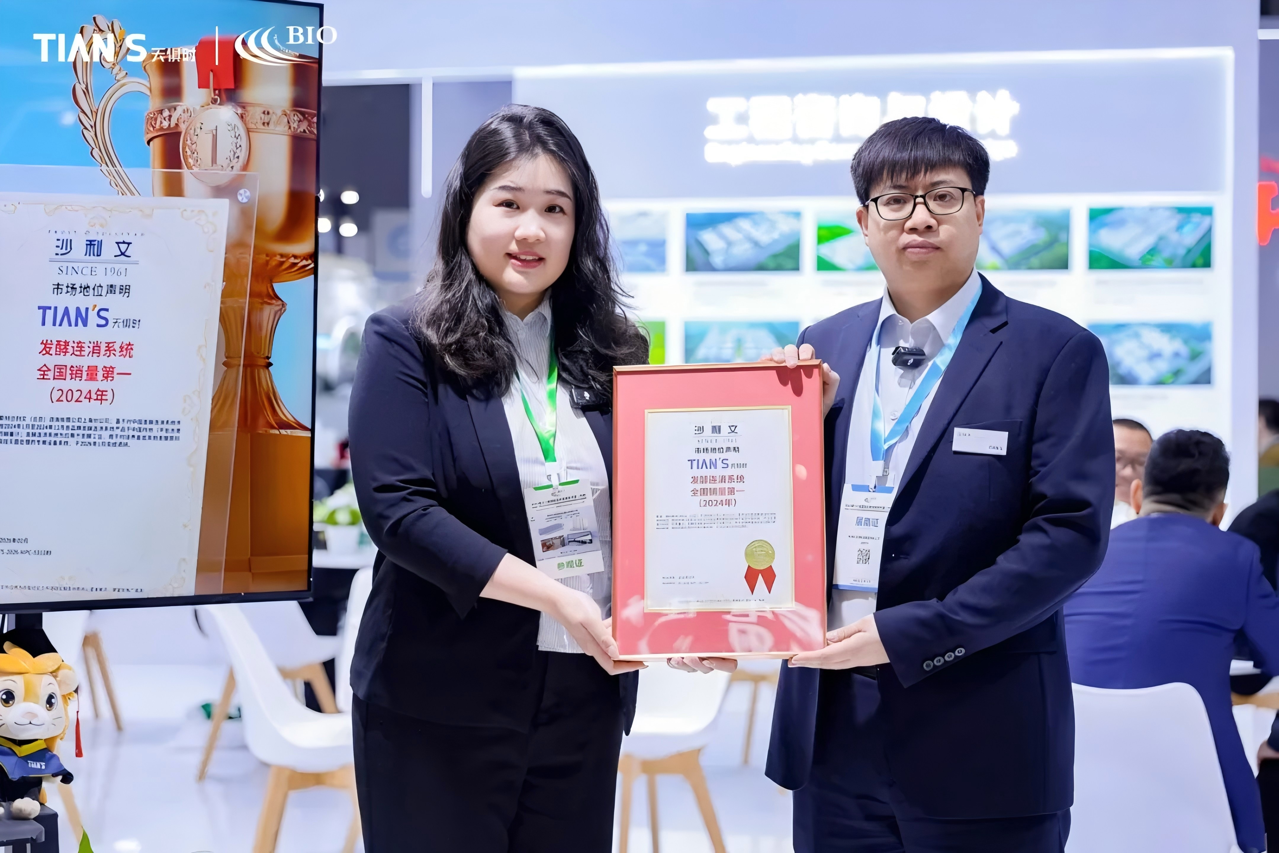 3月9日上午,在天俱時(shí)集團(tuán)展位上,弗若斯特沙利文大中華區(qū)醫(yī)療行業(yè)首席分析師孫榕正式向天俱時(shí)集團(tuán)副總裁田林升頒發(fā)“發(fā)酵連消系統(tǒng)全國(guó)銷量第一”證書。
